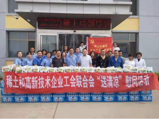 On August 8, 2019, the leaders of the Industry Bureau of Rare Earth High-tech Zone visited Sanlong Metal Company to carry out the “Send Cool” sympathy activity in the summer of 2019. The general manager Wang Zong, the labor union chairman Wang Tao and the front-line workers of the workshop participated in this activity. This event reflects the importance of union leaders to frontline employees.